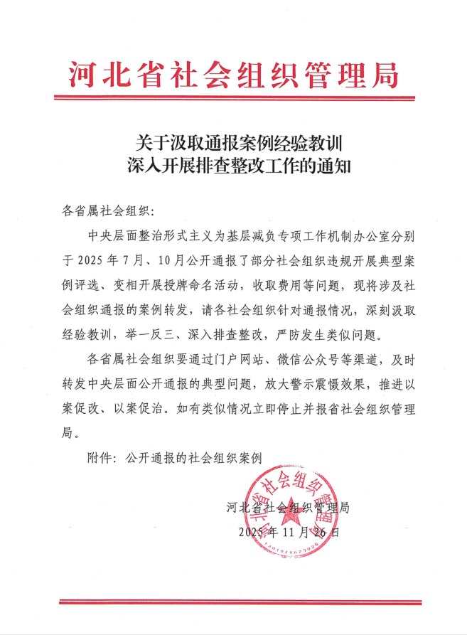 河北省社会组织管理局关于汲取通报案例经验教训深入开展排查整改工作的通知